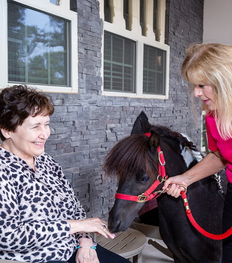 Experience the calming effects of equine activities in our dedicated paddock, where residents can connect with gentle animals.